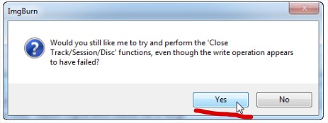 Avec la version 2.3.2.0 d'Imgburn, vous n'avez plus rien a faire. Pour les versions plus récentes, une dernière fenêtre va s'ouvrir pour demander de fermer le dvd, cliquer sur OUI.