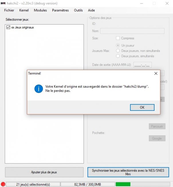 NB : Le tuto a été fait avec la Release Candidate 3 d'Hakchi2, mais la procédure est identique avec la v2.21b.
