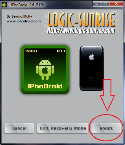 Brancher votre iPhone à votre ordinateur par USB, lancer iPhodroid et cliquez sur "Shoot!" - les archives iPhodroid ci-dessus contiennent le PSFreedom pré-compilé !