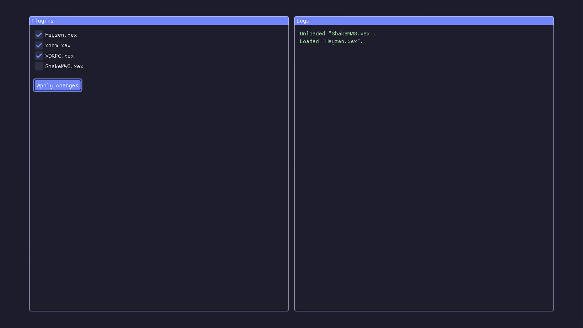 - Si un plugin dans le répertoire avait le même nom qu'un plugin déjà présent, il était incorrectement affiché comme déjà chargé. Par exemple, si le fichier de configuration pointait vers hdd:\Plugins et que hdd:\Plugins\xbdm.xex existait mais que xbdm.xex était chargé à partir de la mémoire flash, hdd:\Plugins\xbdm.xex était incorrectement affiché comme déjà chargé.