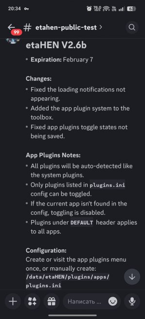 Notre ami sunriseur Overload nous informe de la disponibilité d'une version test d'etaHEN 2.6b de la part de LightningMods qui propose via discordapp.com une nouvelle mouture de son plugin. Cette version d'etaHEN v2.6b a été taillé pour le firmware 10.01 de la PS5.